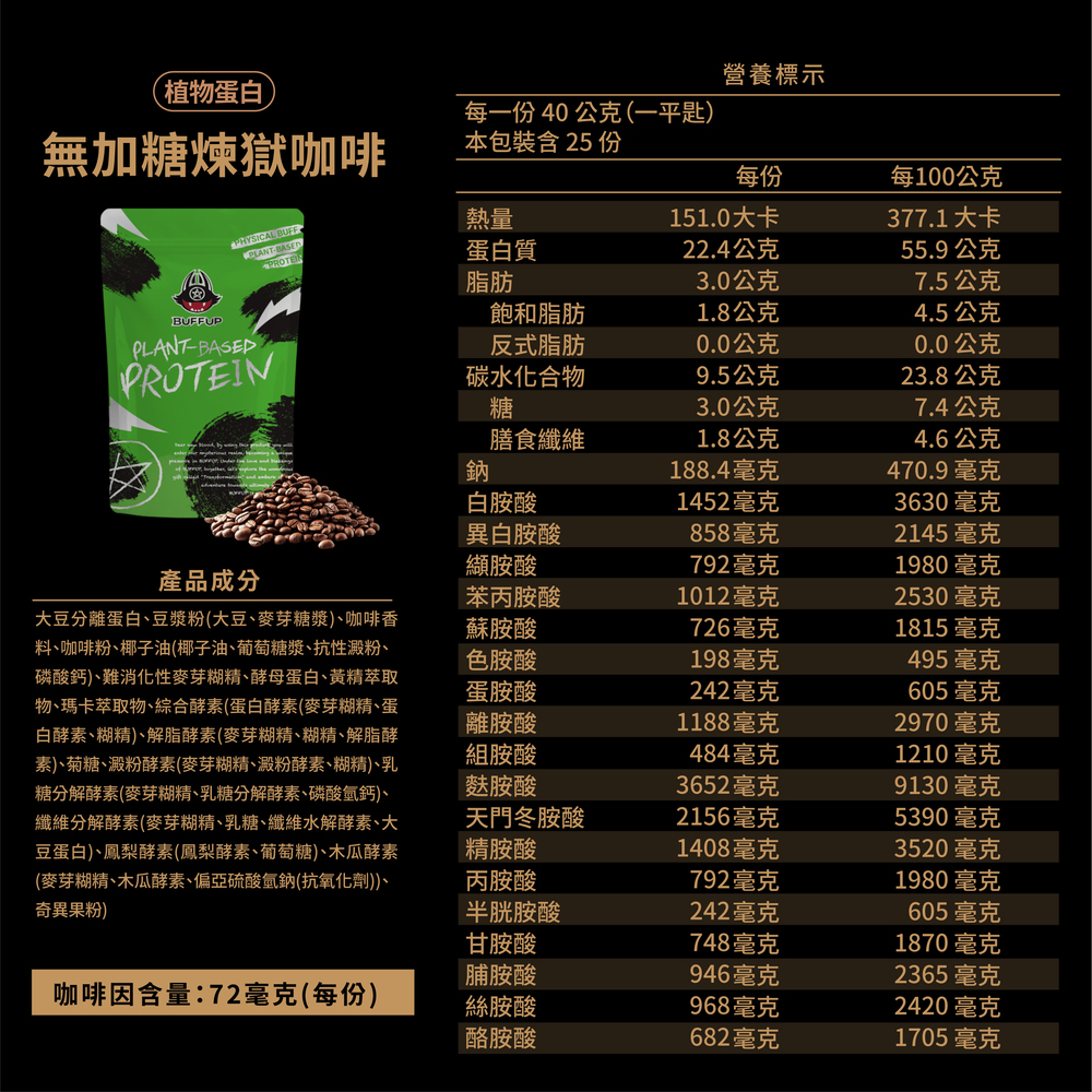 BUFFUP 物理強化|植物蛋白 無加糖煉獄咖啡(1KG)