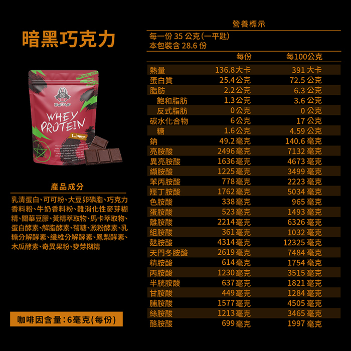 BUFFUP 物理強化|乳清蛋白 暗黑巧克力(1KG)